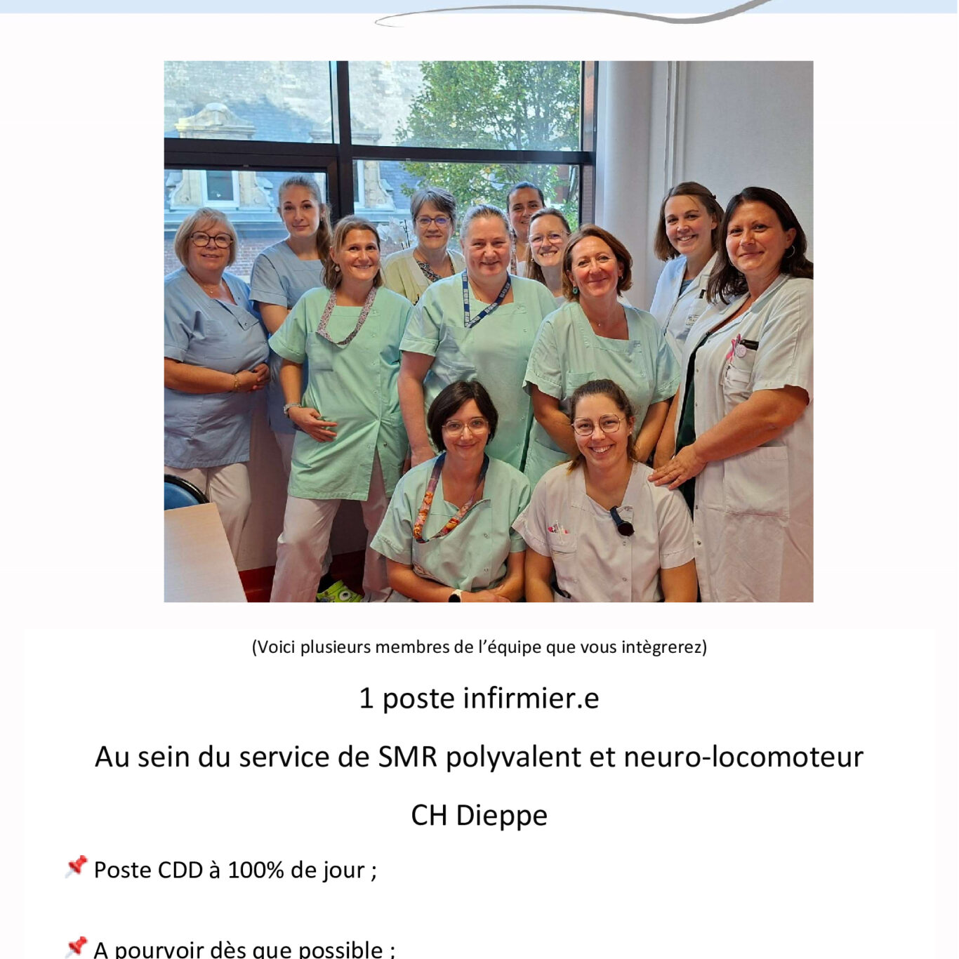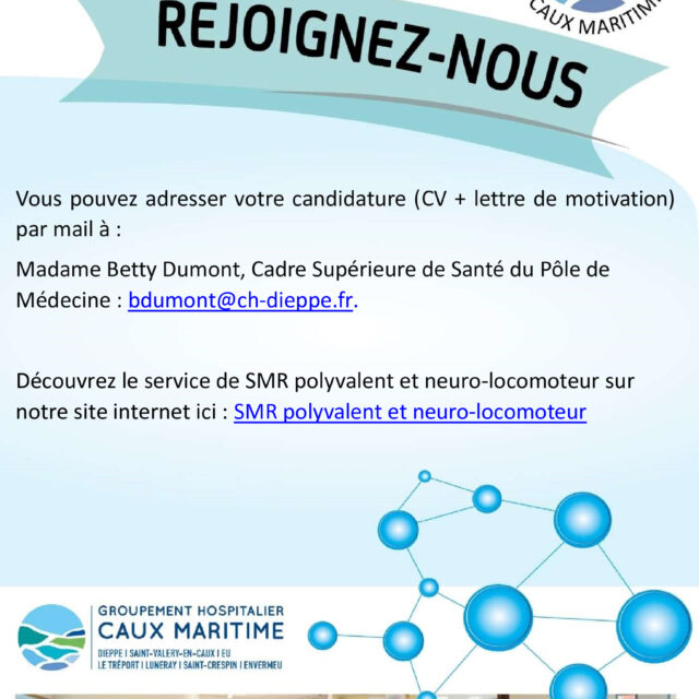 … à venir faire équipe avec nous en rejoignant le service de Soins Médicaux de Réadaptation polyvalent et neuro-locomoteur du CH Dieppe, en tant qu’IDE de jour ?