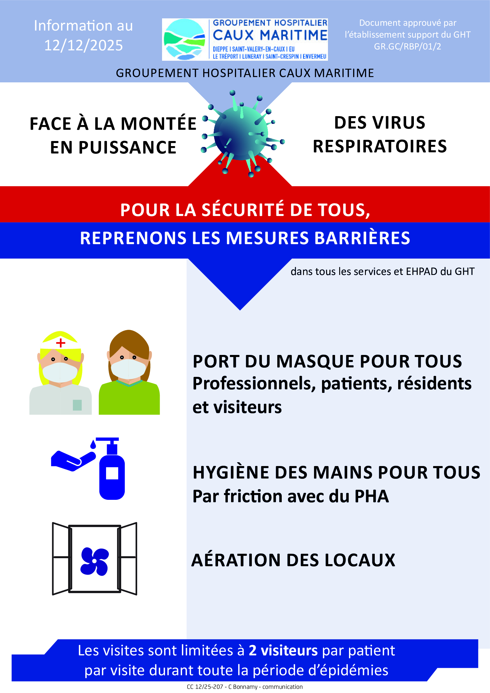 📌 de porter, Ă nouveau, un masque dès votre entrĂ©e dans l’un de nos Ă©tablissements et durant toute la durĂ©e de votre visite. Ceci est valable pour les professionnels, les patients, les rĂ©sidents et les visiteurs ;