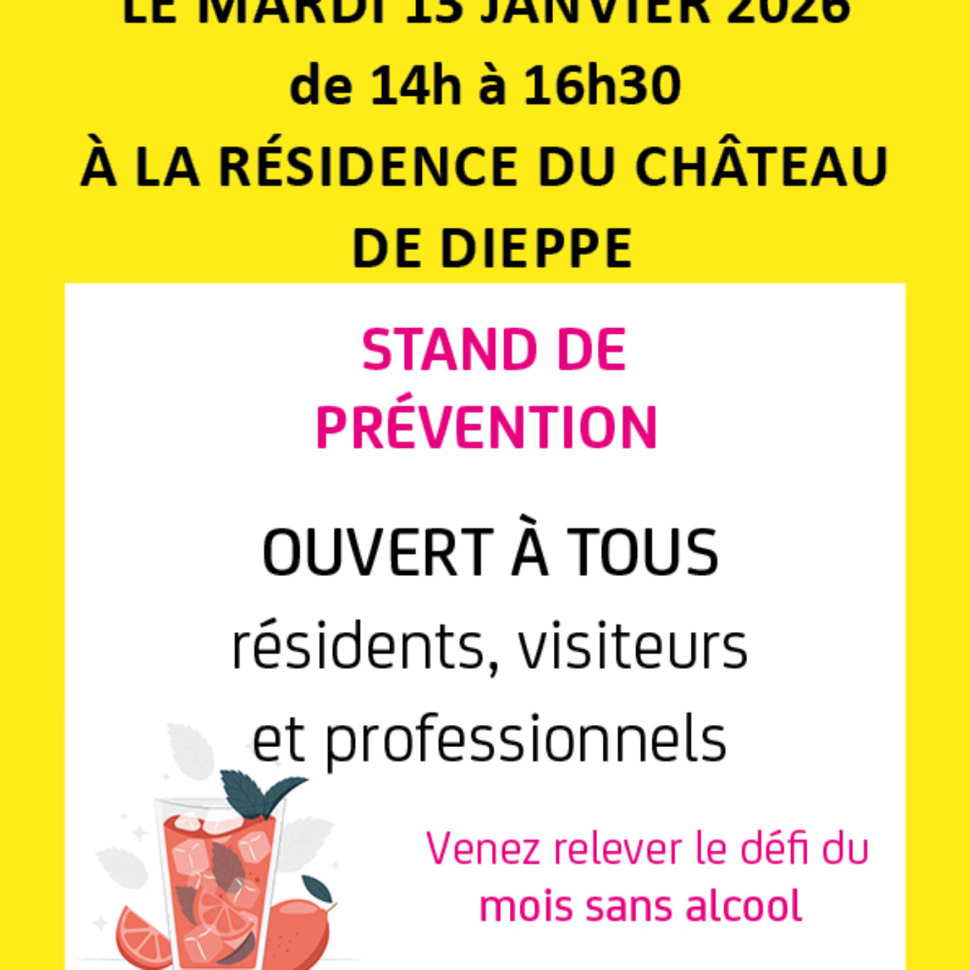 Le mardi 13 janvier 2026, il vous sera proposé à la Résidence du Chùteau, de 13h30 à 16h30 un stand de prévention ouvert à tous (résidents, visiteurs et professionnels).