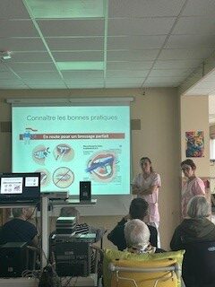 En tant que référentes en hygiène bucco-dentaire, elles ont animé cette intervention en alternant rappels essentiels à l’aide d’un diaporama et jeux ludiques, afin de rendre le moment à la fois instructif et convivial.
