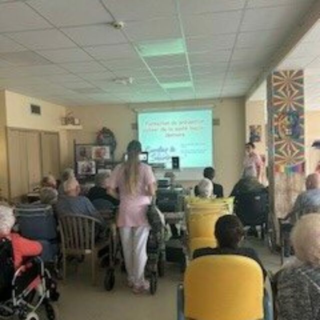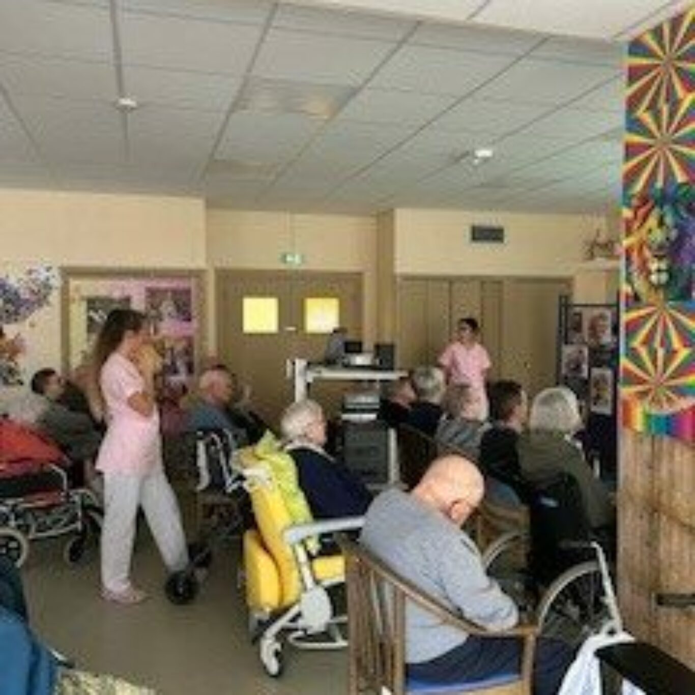 Aujourd’hui, Mélanie et Shona, aides-soignantes de l’EHPAD, avec l’équipe d’animation ont mené une action de sensibilisation et de santé auprès des résidents de l’EHPAD.